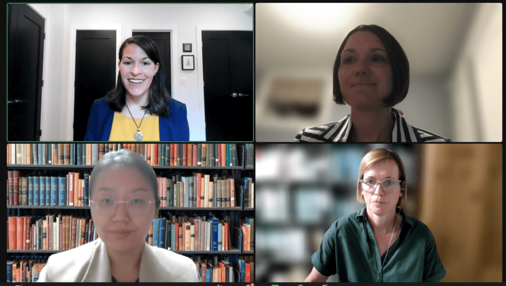 Panelists included Irmgard Niemeyer, head of the Division of Nuclear Safeguards and Security at Forschungszentrum Jülich, Germany; Elaine Kanasewich, acting director for the International and Government Relations Division at the Canadian Nuclear Safety Commission; and Hojung Do, a researcher at the Korea Institute of Nuclear Nonproliferation and Control (KINAC) at the Center for Nuclear Nonproliferation Strategy & Technology. The panel discussion was moderated by Nuclear Threat Initiative Program Officer Jessica Bufford.